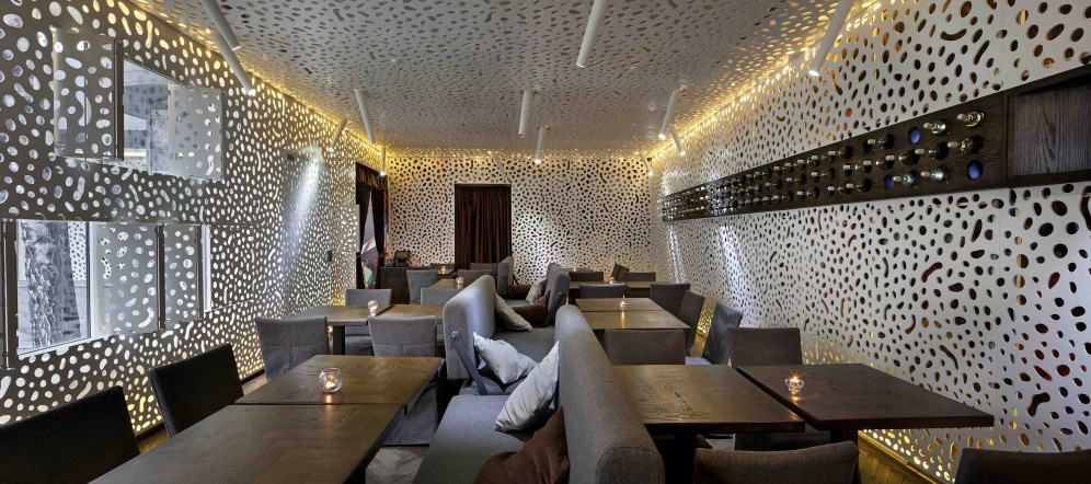 Cafe c.a.f.e. in Kharkov, Ukraine is “see through” yet cozy.